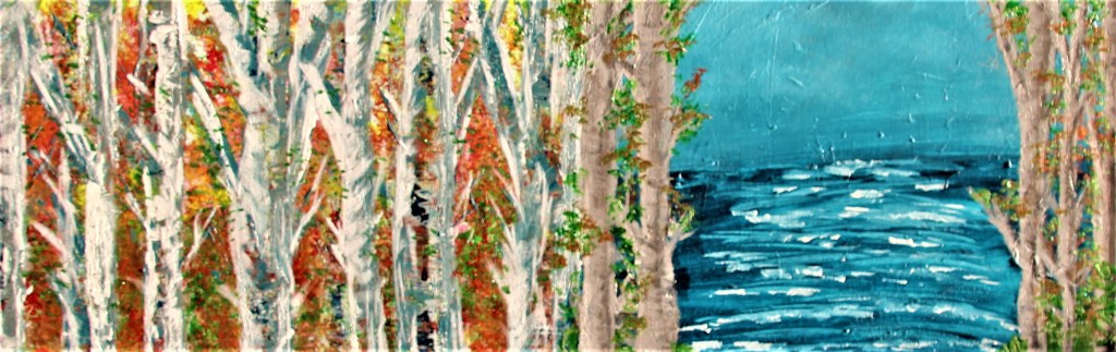 Night glimpse comes from the idea of one walking through a forest of birch trees in the fall at night and after being surrounded by trees, finding an open space where one can get a glimpse of the ocean.